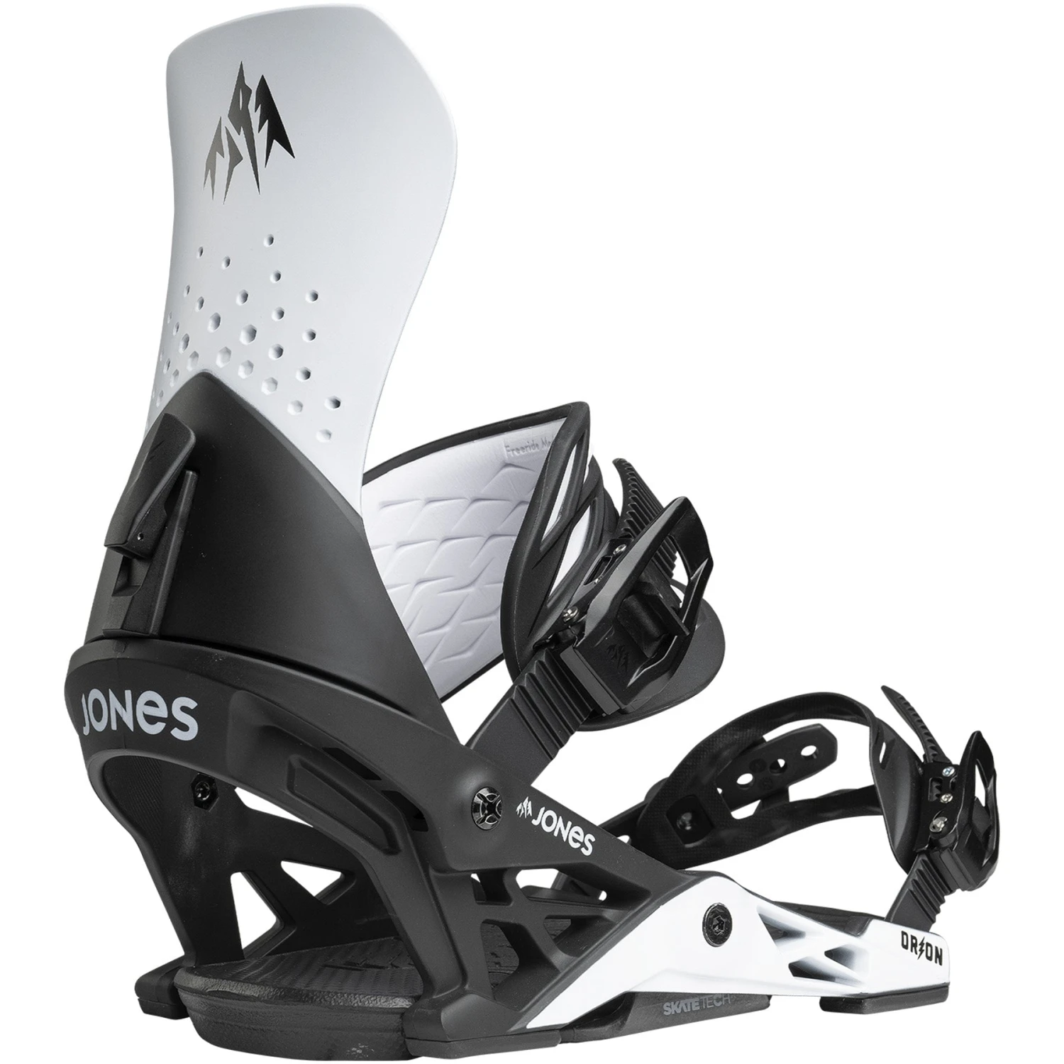 The 2025 Jones Orion is a freestyle focused binding which excels on the mountain for any rider who are in search of a comfortable and responsive binding which can be used all over the mountain. The Progressive Flex Highback offers a responsive, yet playful, flex pattern thanks to its unique construction, with a stiffer bottom section that progressively softens towards the top, offering a more playful lateral feeling. With all the benefits of Skate Tech that Jones bindings are known for, you receive some of the best board feel on the market and with the interchangeable Comfort Flex Ankle Straps, you can further customise your response by switching between Freeride mode for a more responsive ride or Surf mode for a more mellow, flexible feel.