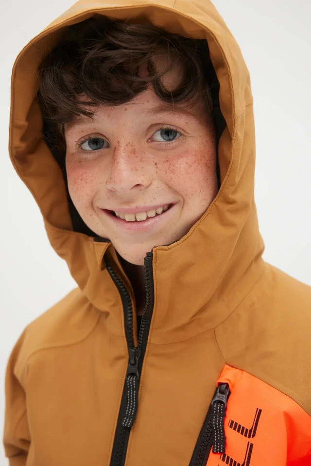 Constructed with a grow system to carry through the years, the regular-fit Jacksaw Jacket makes your little rider ready to take on the whole mountain. Equipped with 10K/10K waterproofing and breathability in combination with a PFC-free durable water-repellent coating, critically taped seams and armpit venting to provide comfort and elevated climate control while preventing moisture from seeping in through the fabric or seams. The jacket has 80g insulation, of which 90% is Repreve® recycled polyester, which offers warmth from the first run until the last chair. Featuring a detachable hood, snow gaiter, back hood adjuster, jacket-pants connector system, reflective details and six easy-to-access pockets.