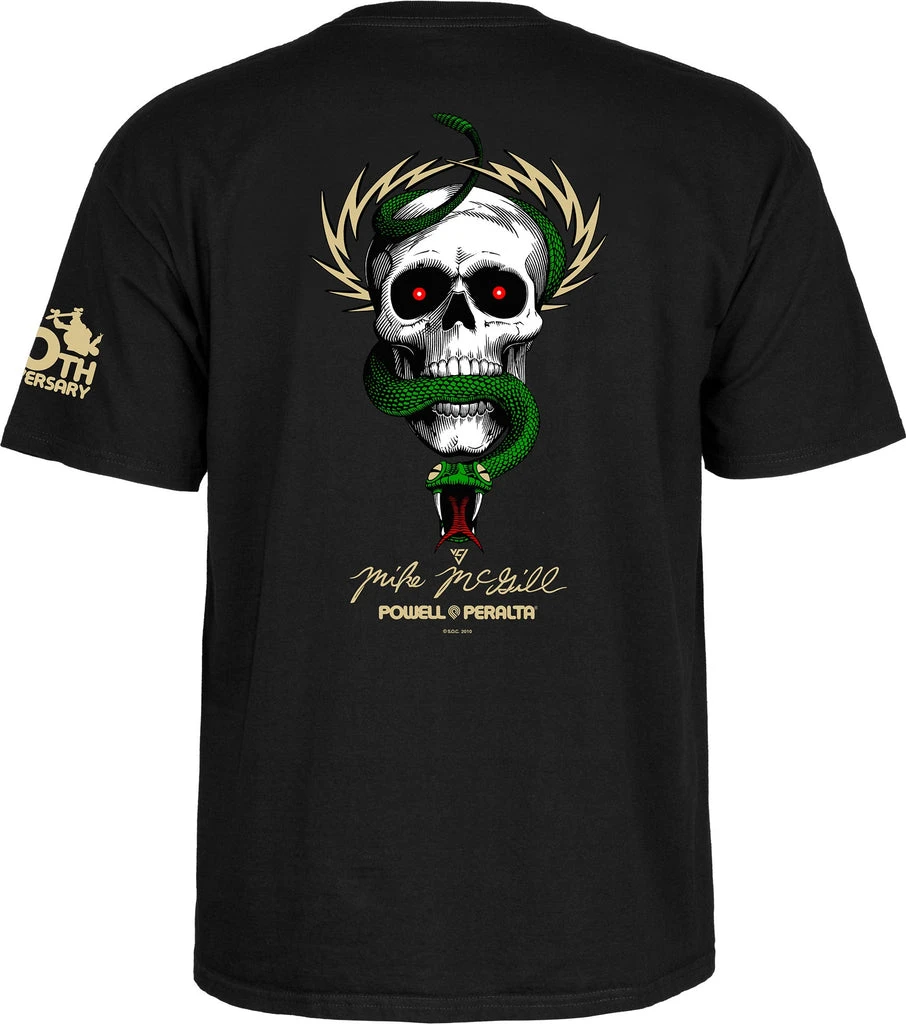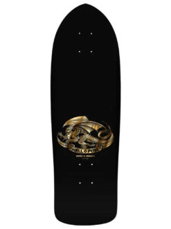 Just as Mike McGill was perfecting the 540 McTwist in the summer of 1984 at Swedish summer camp, V.C.J. was working on a new deck graphic for him. Since the “Skull & Bones” theme was proving to be popular, that was the direction chosen for McGill’s new deck. Mike’s input was to add the snake and lightning bolts since there is an abundance of both in his home state of Florida. McGill’s Skull & Snake is truly a classic skateboard icon.